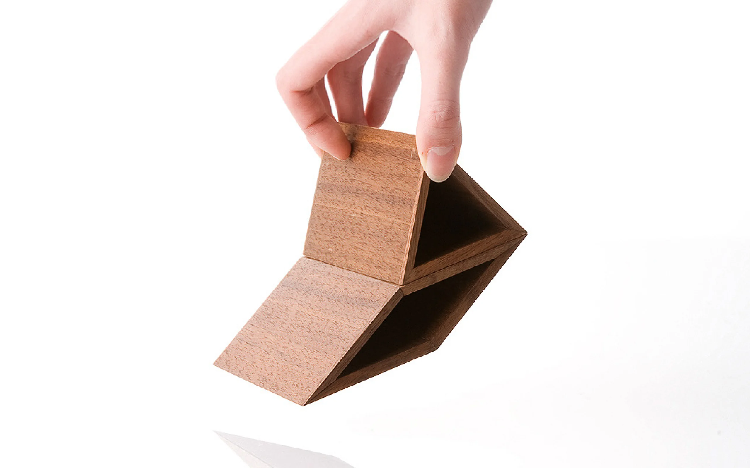 Together with Tokushima’s furniture maker “TSUBOI KOGEI,” we produced wooden stationery boxes “MAG CONTAINER,” constructed with built-in magnets. Each box is an equilateral triangle, a square, and a rhombus. Each has angles of multiples of 30 degrees. By combining and customizing these boxes freely, a geometric pattern is created like a puzzle and enjoyed as a room interior. By creating products smaller in size than traditional box furniture such as chest drawers, mirrors, and altars, we aimed to expand the possibilities of box furniture technology cultivated in Tokushima.