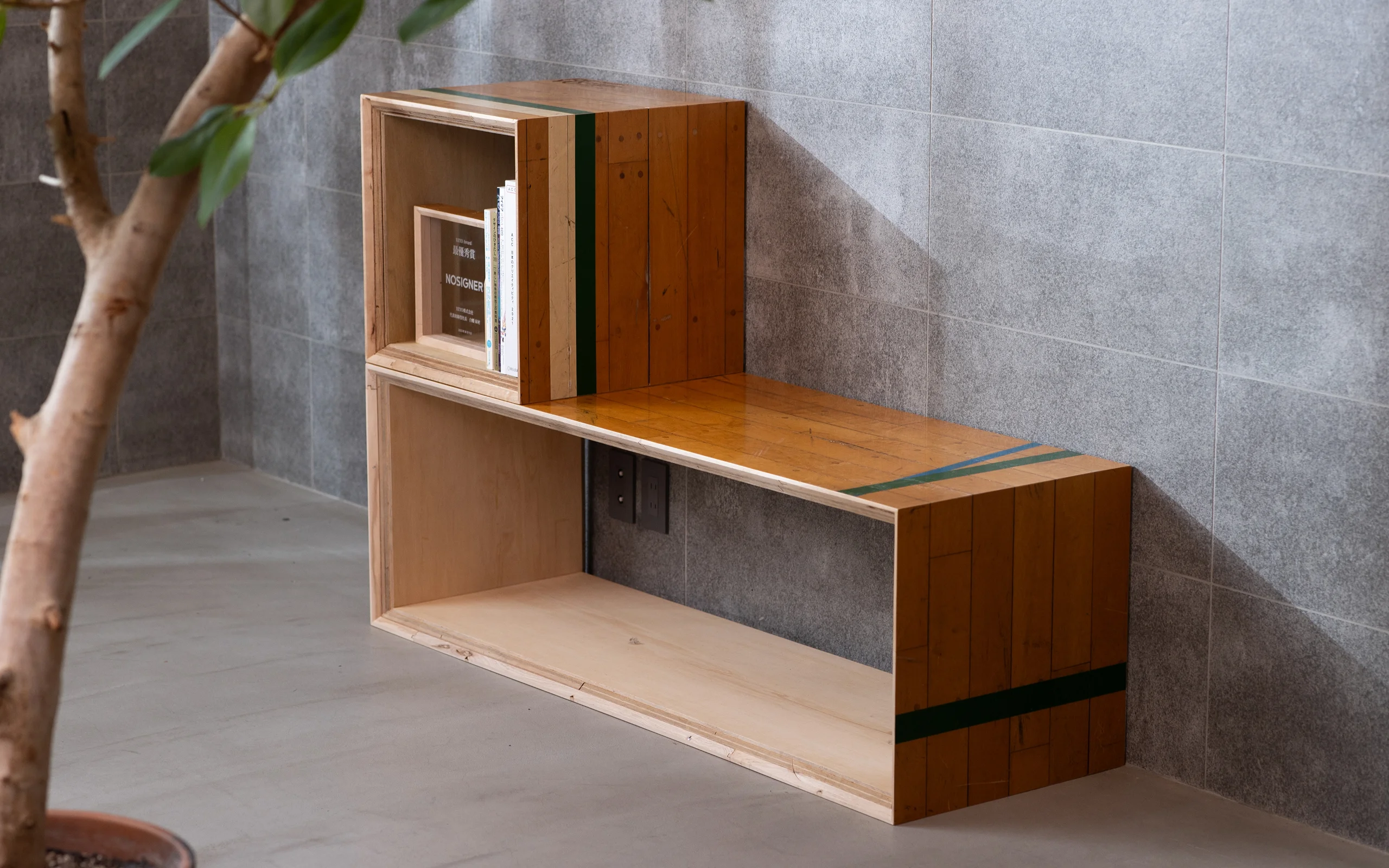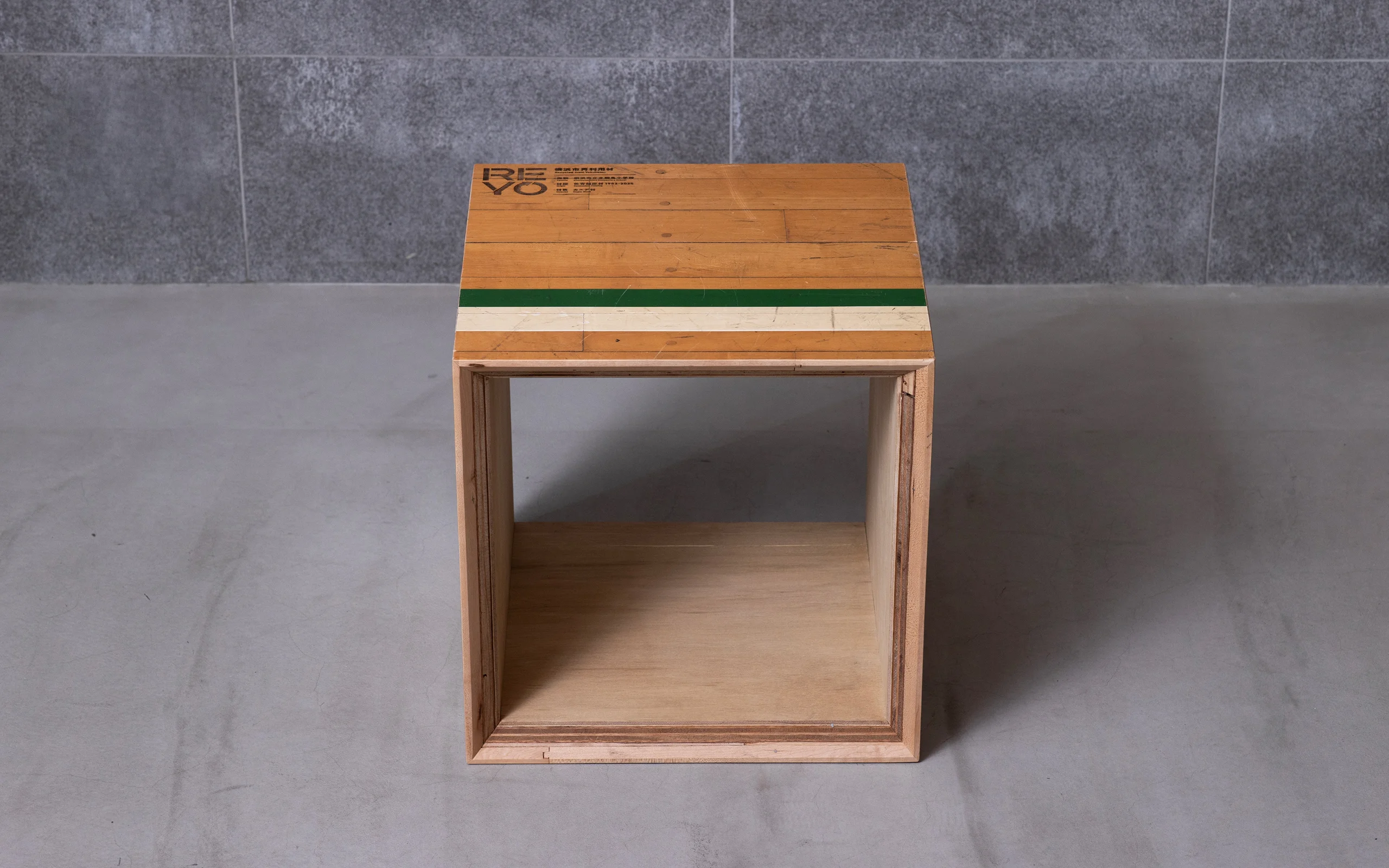 Every year, large amounts of flooring reach the end of their life in municipal school gymnasiums. Instead of incinerating them, the Yokohama City Building Bureau aimed to extend their carbon-fixation period by reusing the wood in its original form. Small-scale efforts—such as creating furniture and small objects, hosting workshops, and collaborating with private companies—had already begun, but a unified design strategy was needed to accelerate the movement, a role that NOSIGNER came to fulfill.
