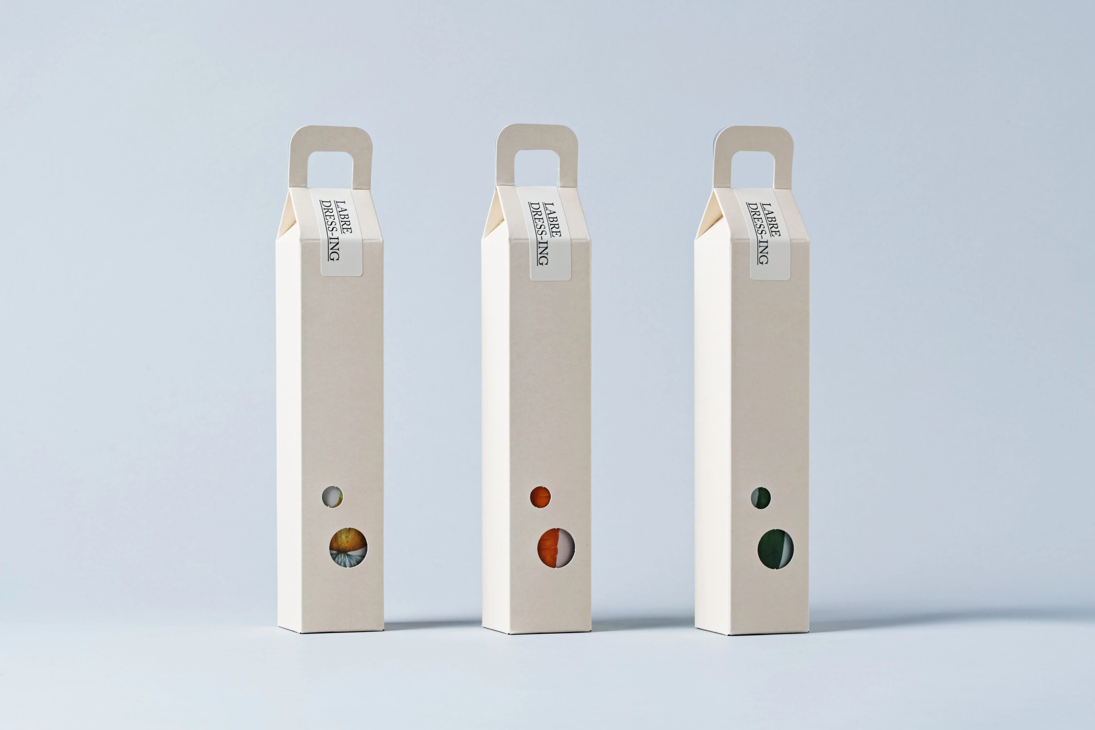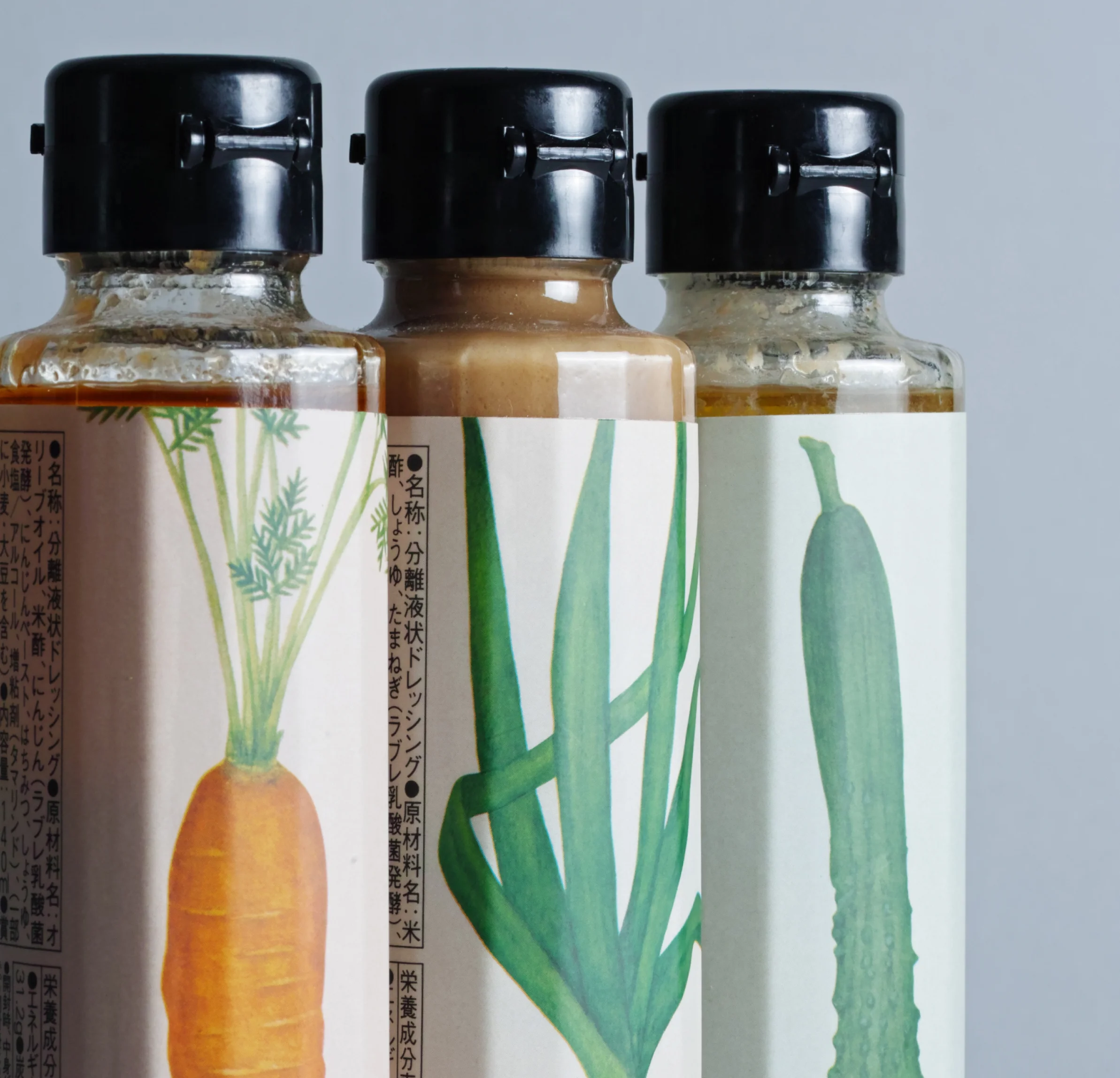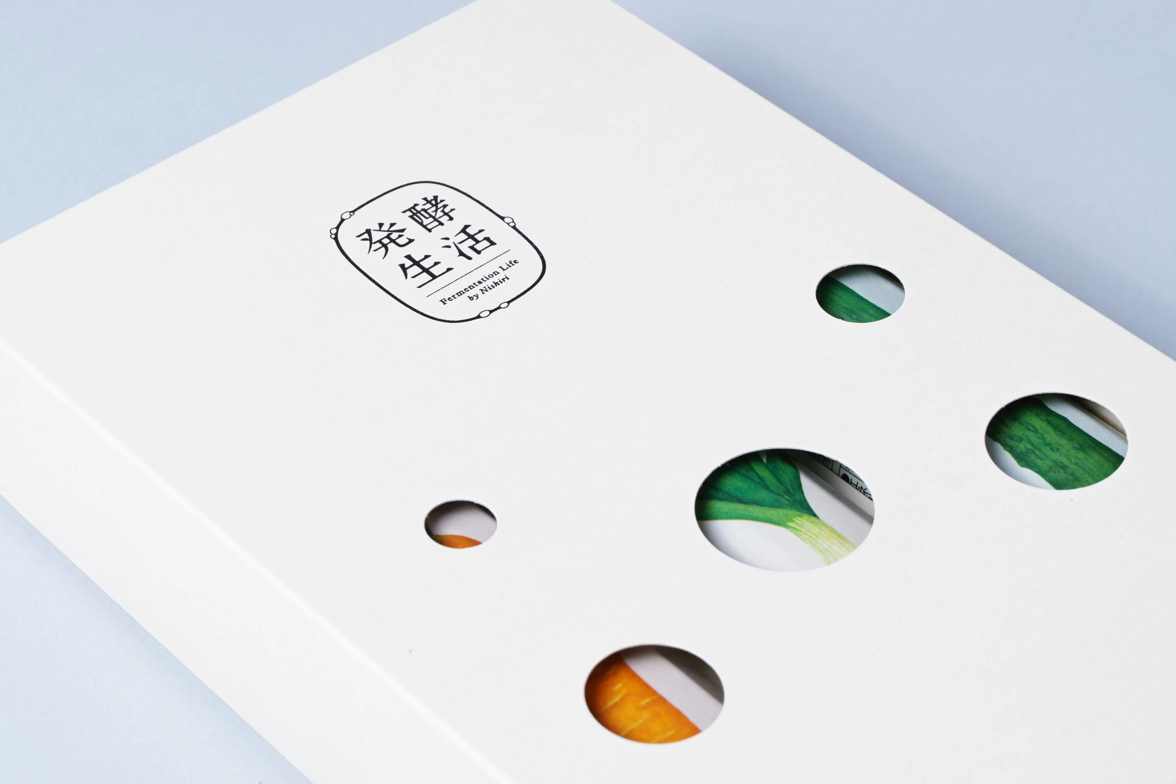 NISHIRI tiene la imagen de una tienda establecida desde hace mucho tiempo de alimentos encurtidos. Para crear una nueva imagen como marca de alimentos fermentados saludables, diseñamos el empaque para enfatizar una sensación de eclecticismo tanto japonés como occidental. Estamos usando principalmente fuentes de la era de la impresión tipográfica llamada "Plantin", ya que queríamos que esta marca fuera un diseño tanto de Japón como de Europa Para hacer un mejor uso de las ilustraciones que la marca usaba inicialmente antes del proceso de cambio de marca, separamos la tipografía y las ilustraciones. Pensamos cuidadosamente en cómo estarían los productos en los estantes, asegurándonos de que las ilustraciones y el título, o solo las ilustraciones, estén mirando hacia el cliente. La caja de regalo representa burbujas, donde el diseño del empaque se muestra a través de agujeros recortados colocados al azar en la superficie.