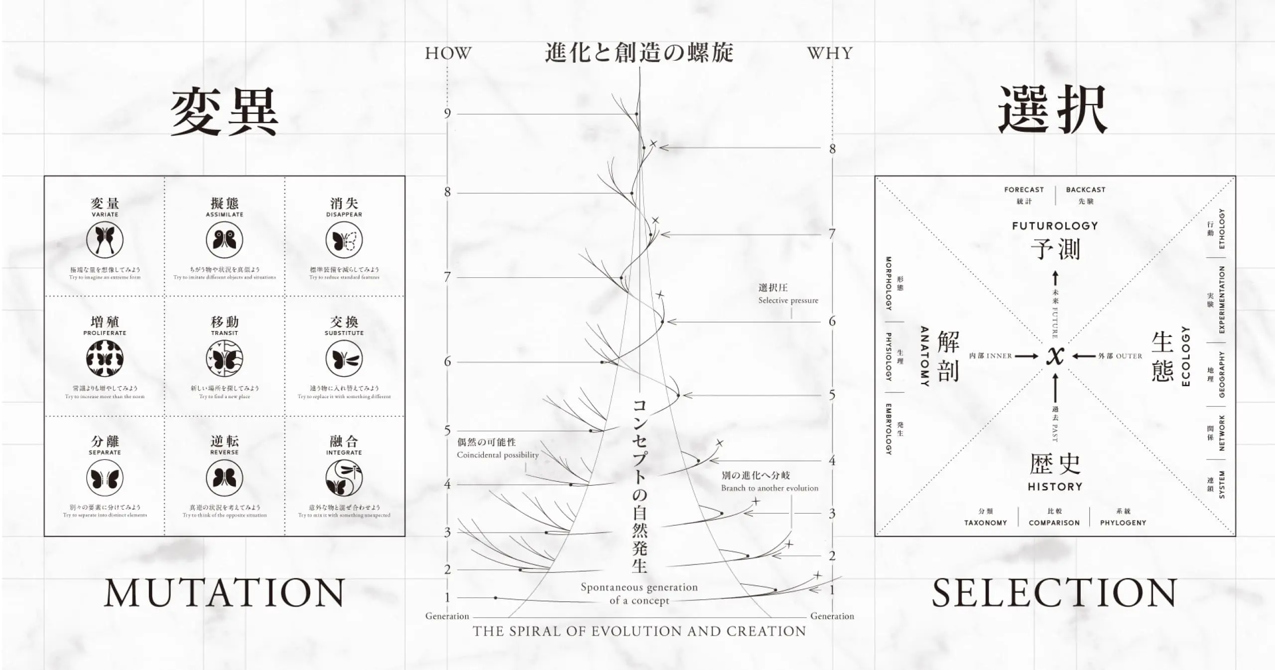 Metodología creativa que aprende de la evolución biológica. Adoptada por más de 70 empresas y universidades, ganadora del Premio Yamamoto Shichihei. Traducida al chino, coreano e indonesio, extendiéndose globalmente.