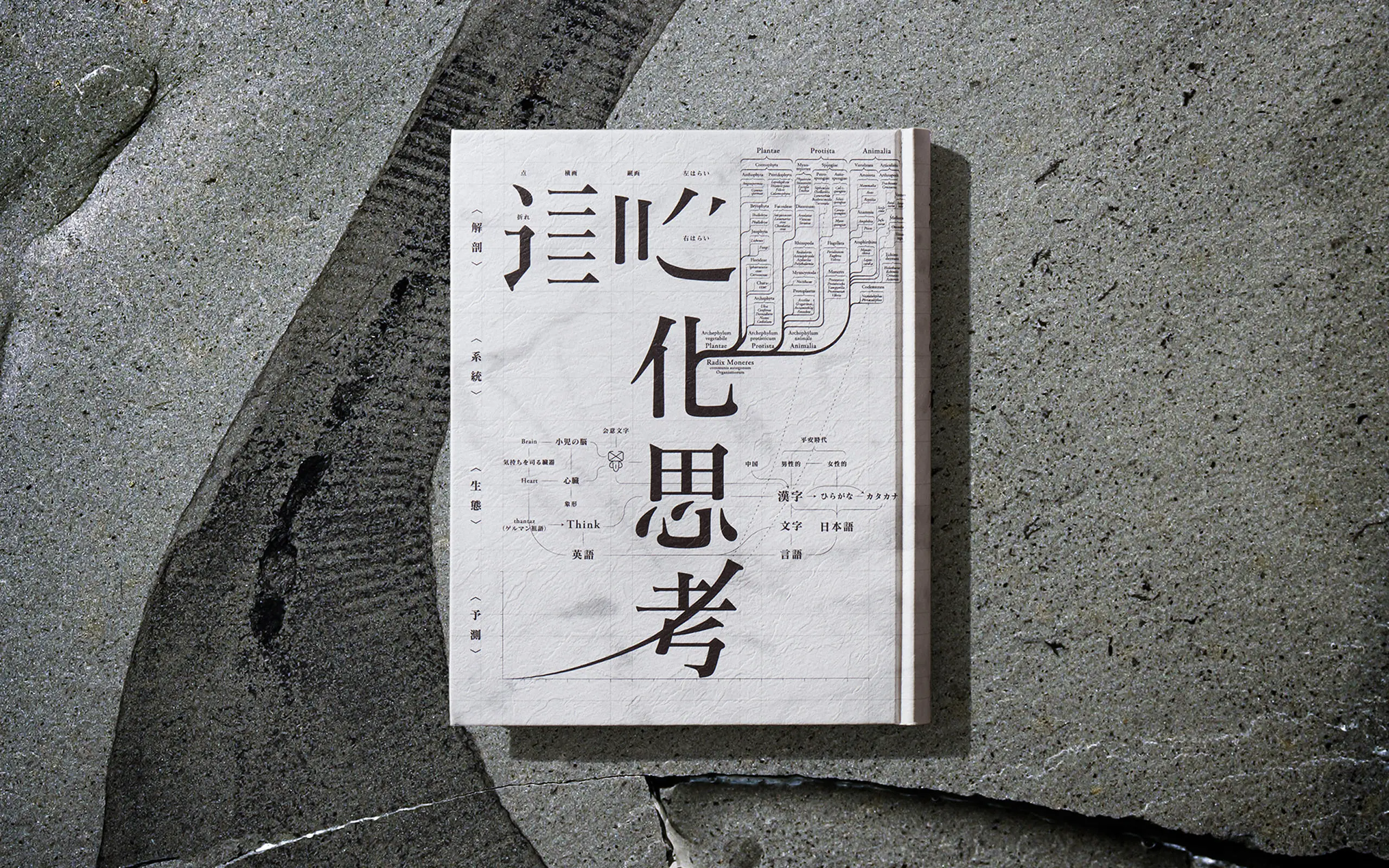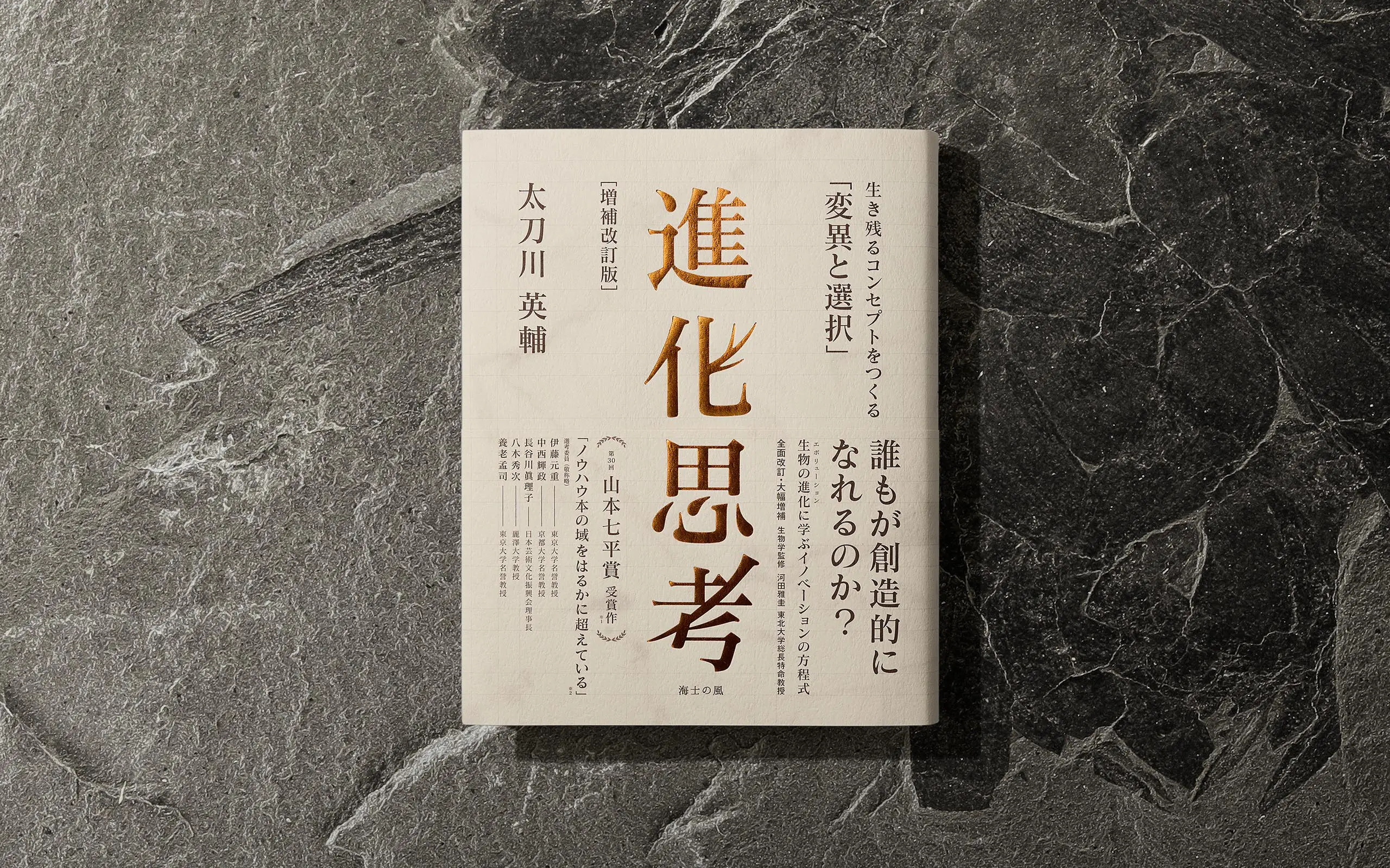 La portada del libro utiliza un papel estampado en relieve (llamado "Iwa-hada" o superficie de roca) con una textura similar a la roca, sobre la cual se imprime un patrón de mármol. Como los bordes del libro también tienen el mismo patrón de mármol, el libro de más de 500 páginas parece un ladrillo de piedra grueso y sólido. Además, al eliminar elementos decorativos tanto como sea posible y tener un diseño minimalista, se mantiene un tono de color uniforme. Es un diseño de libro atemporal y atractivo que no se deja influir por las tendencias del diseño.
