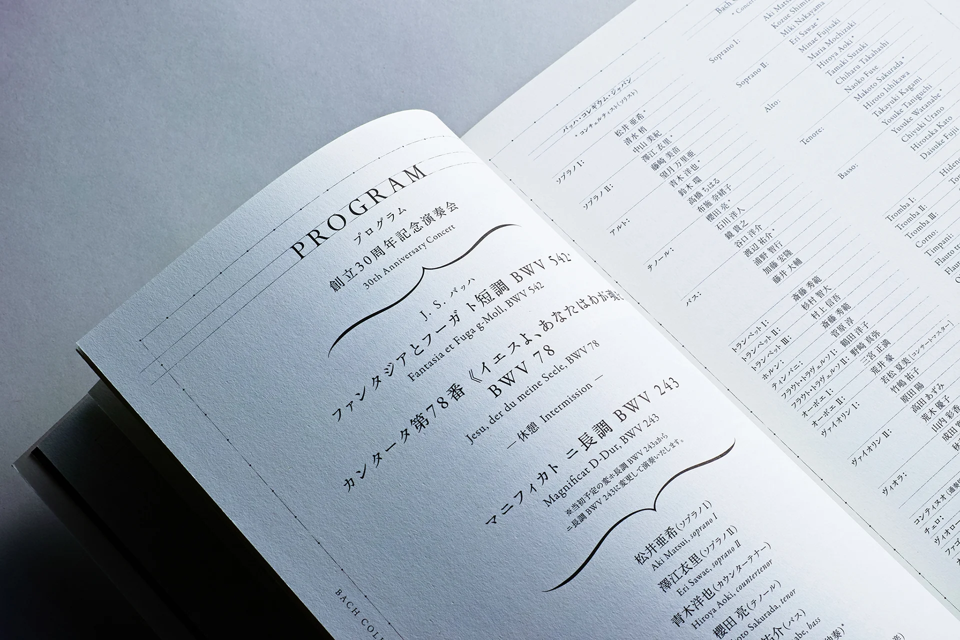 Le Bach Collegium Japan est un orchestre et chœur baroque fondé en 1990 par Masaaki Suzuki, un interprète, chef d'orchestre et chercheur de Bach de renommée mondiale, très respecté tant au Japon qu'à l'étranger. Nous avons eu la chance de les rencontrer et de nous impliquer dans l'image de marque de l'orchestre à travers le programme de représentation de leurs concerts d'abonnement.