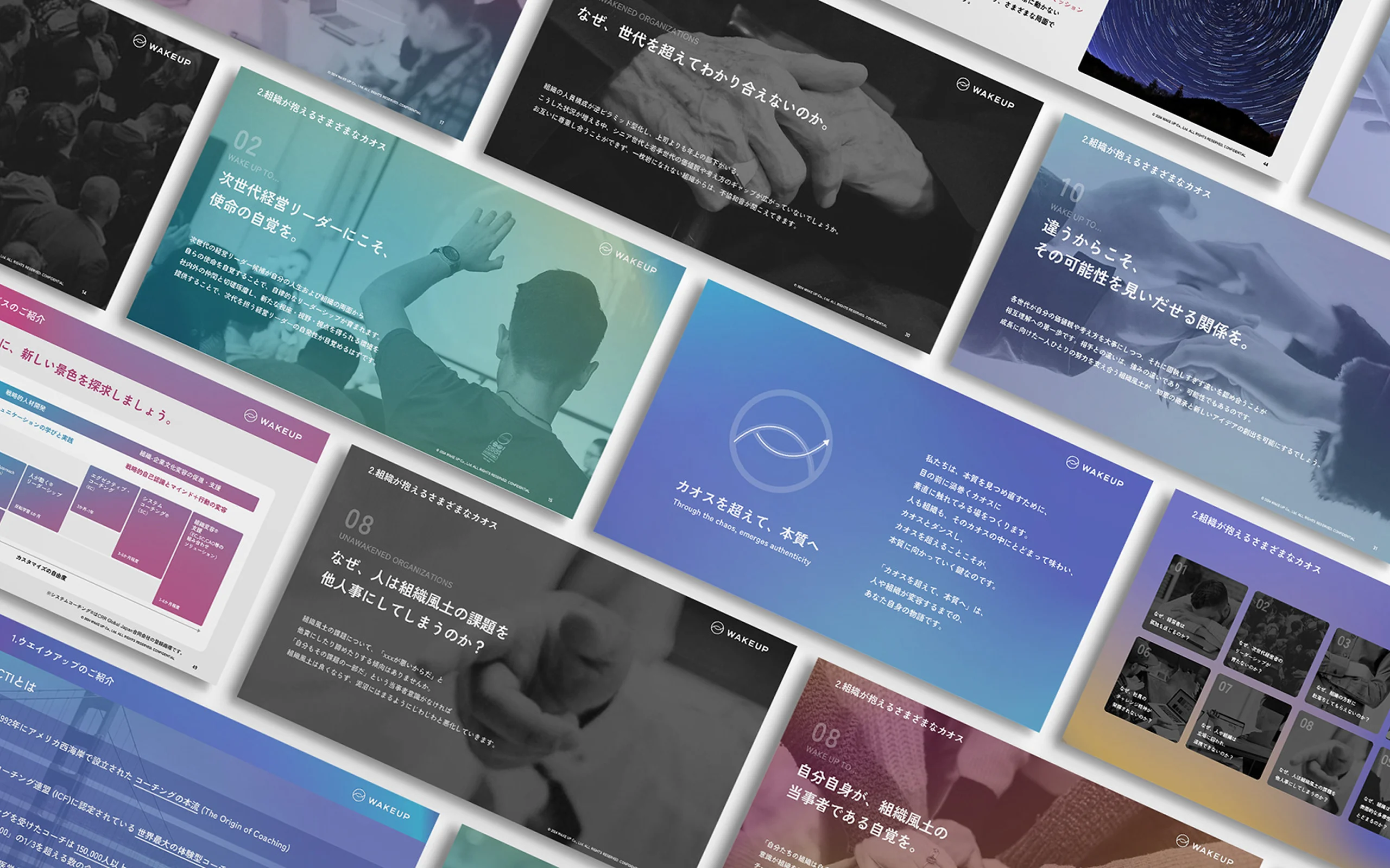 デザインでは、人が変化し、組織や社会が動き出す「コーアクティブ(共創)」のエネルギーを視覚化し、本質的な変容を支える基盤としてのブランドの世界観を表現しています。