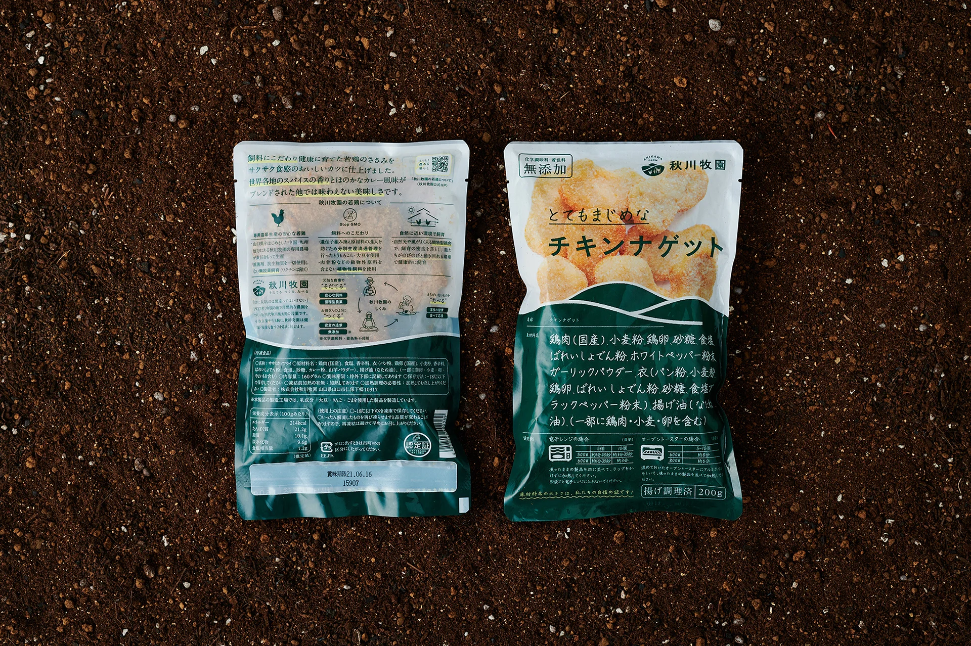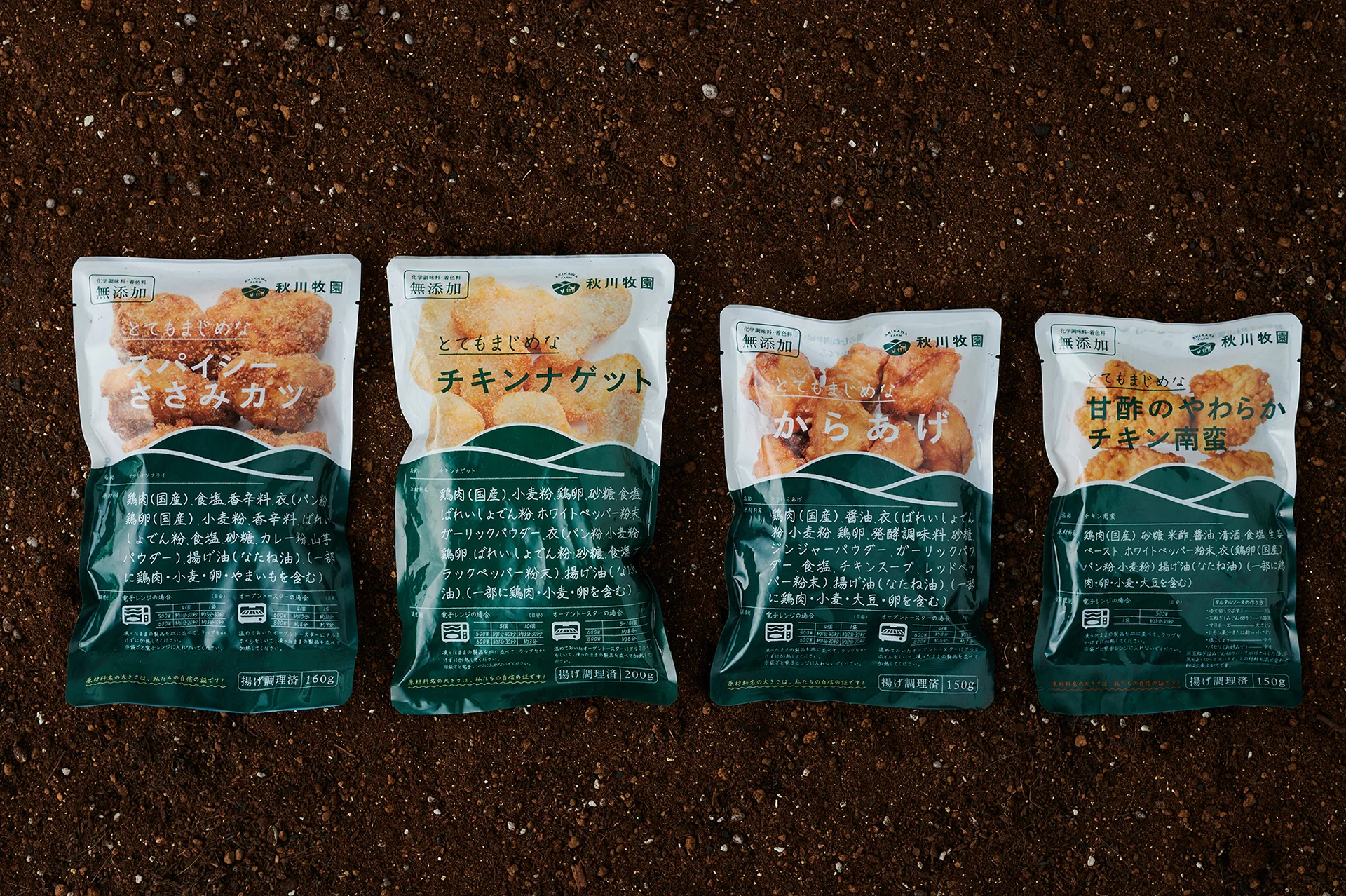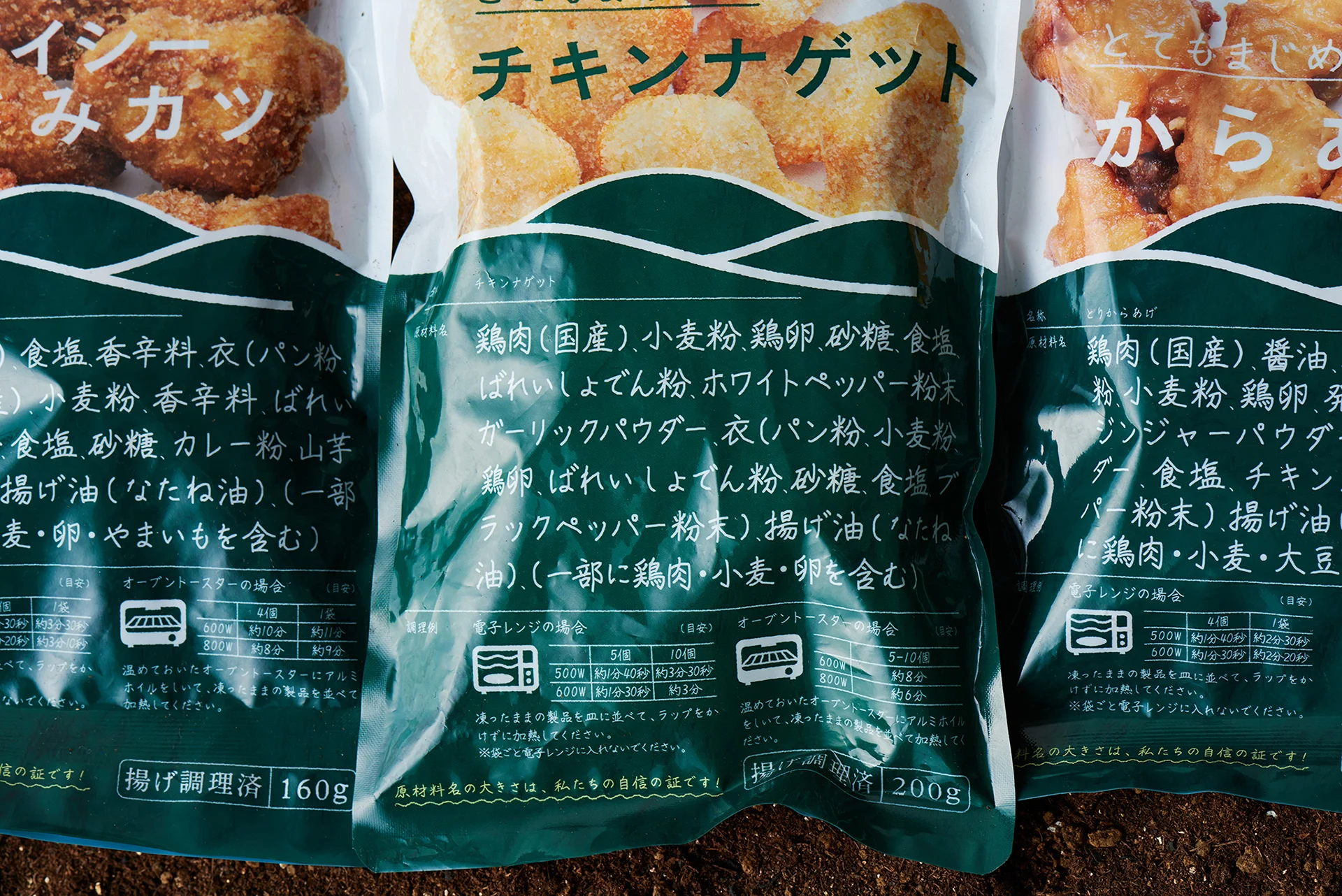 加工品のパッケージでは、この理念を体現すべく、通常では裏面に小さく入る内容物表記をデザインの主要素としてに前面に大きく示しました。食品添加物をはじめとした「余計なもの」が一切入っていないことを公明正大に表明するデザインです。