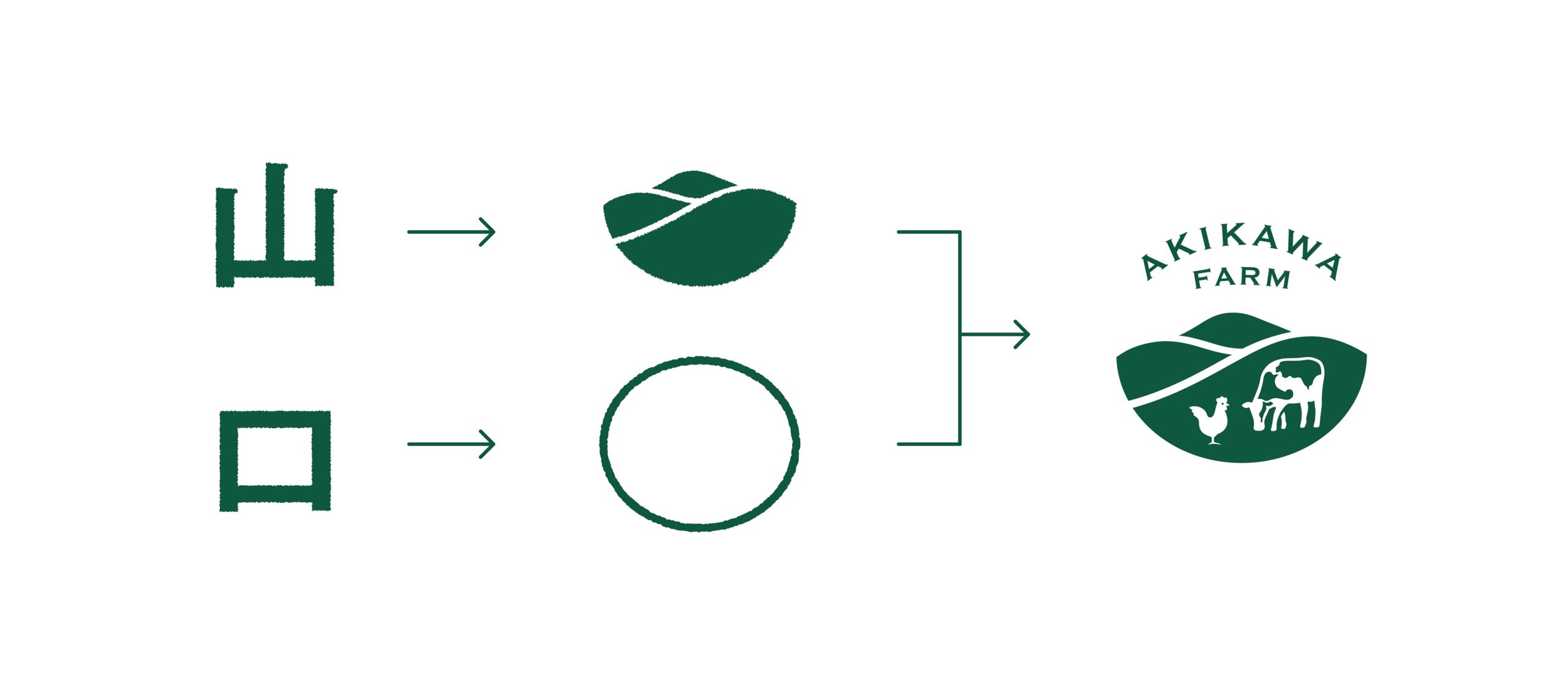 アイデンティティのデザインにおいては、初代房太郎氏が理想としてきた古き良き農園を想起させる新たなブランドカラー「房太郎グリーン」を設定。さらに、同社が地域循環型の農業モデルづくりを掲げていることから、山口県の山並みをモチーフにした「山」(大地)を「口」に入れているようなイメージのマークを設計しました。既存のロゴマークから継承されたモチーフである牛のまだら模様は、同社のグループ農場が点在する山口県と福岡県の一部の地図の形をしています。ここには、地元とのつながりを強め、地域住民にとって誇れる存在になるという企業の意思が示されています。
