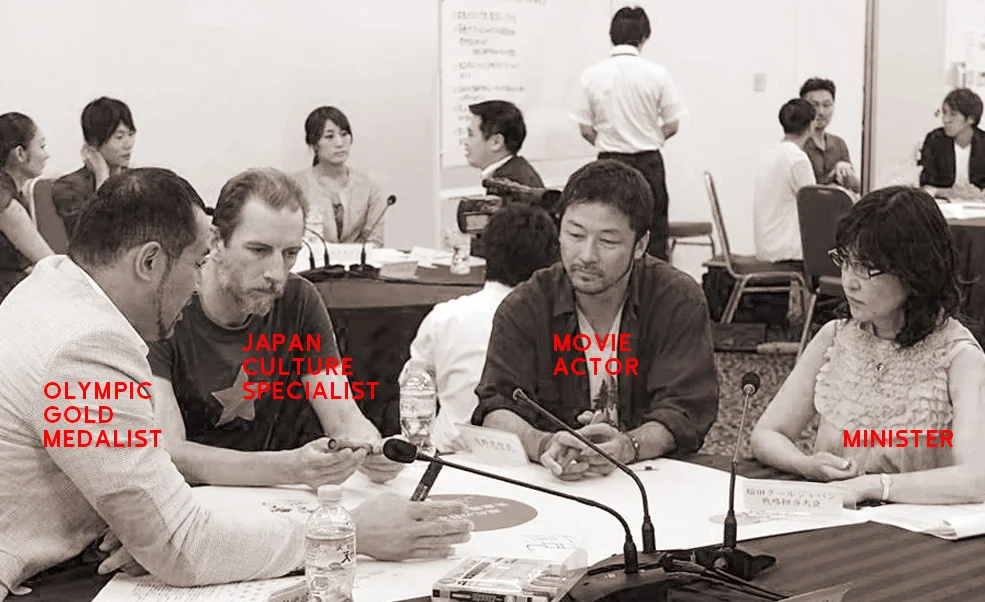 太刀川のディレクションの元、全4回にわたって開催されたクールジャパン推進会議では、過去の有識者会議ではほとんど例を見ないダイアログ形式の議論を行うことを提案。映画監督、俳優、能楽師、アスリートなど各界を代表する面々が全員無償で参加し、利害関係やヒエラルキーを排除した場で忌憚のない意見を交換し、クールジャパンを根本から問い直しました。
