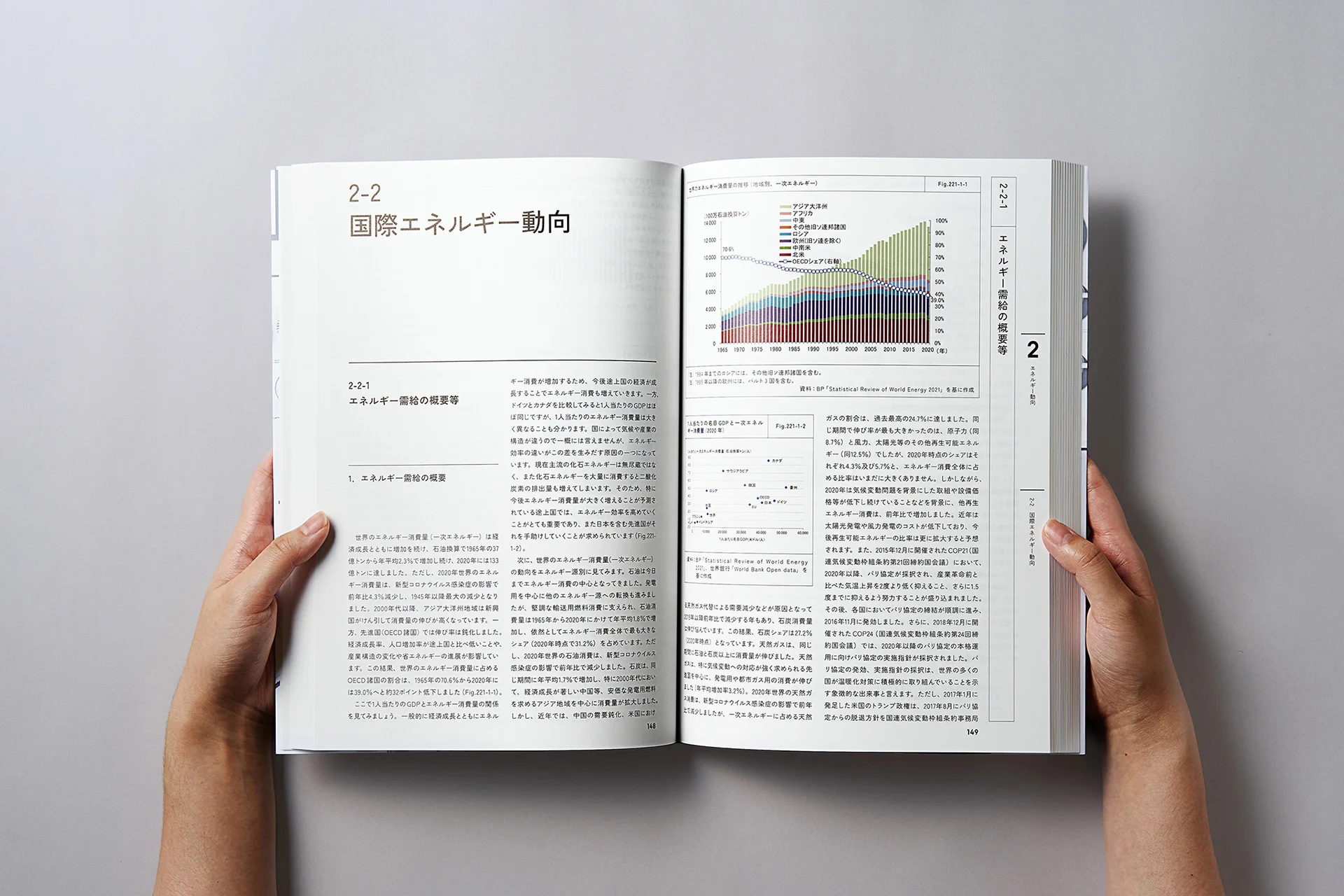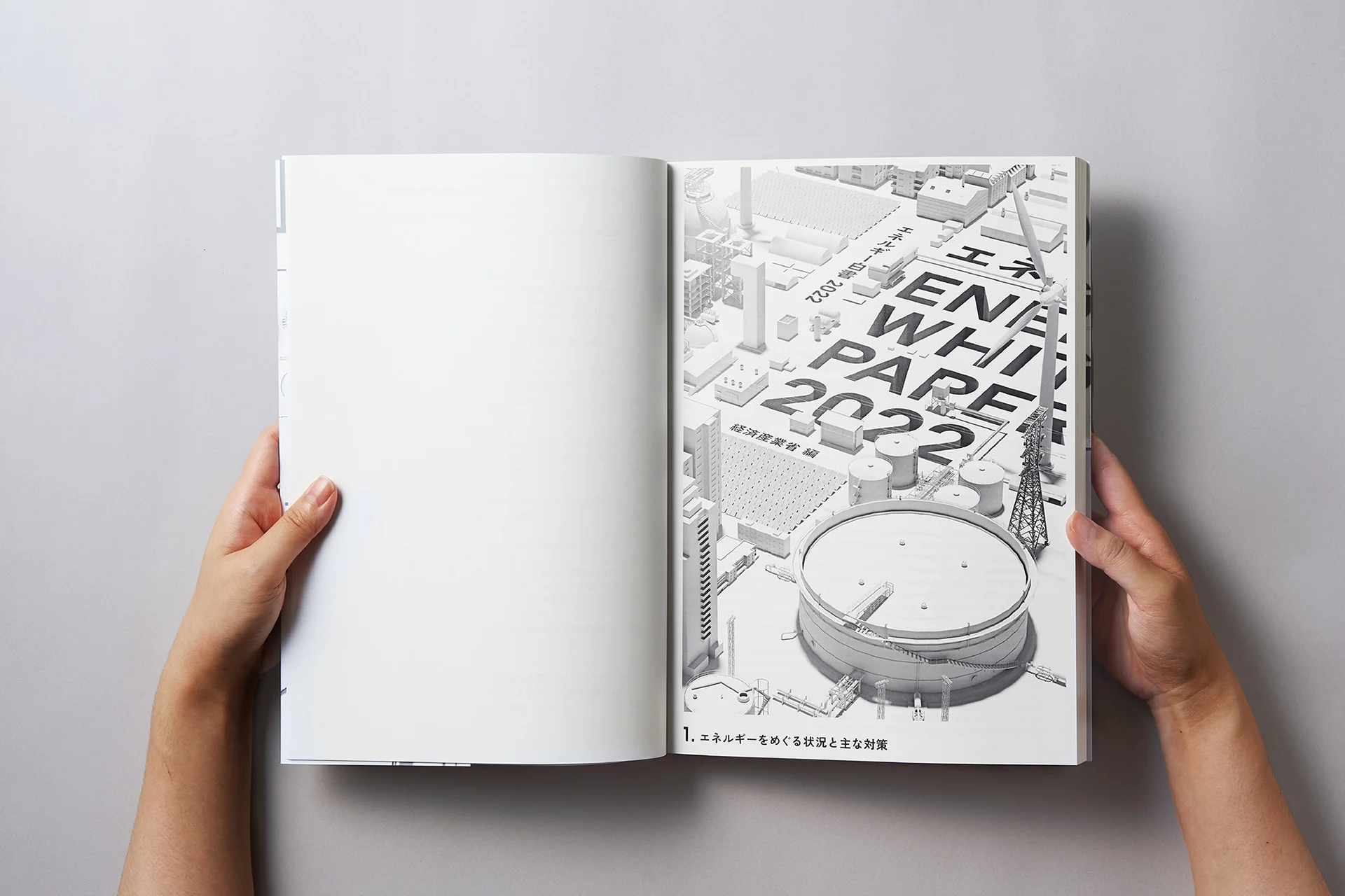 経済産業省が毎年発行している「エネルギー白書」は、エネルギーをめぐる国内外の状況や、日本における政策の方針、今後の方向性などがまとめられたものです。「エネルギー白書2022」の表紙と組版フォーマットのデザインを依頼された私たちは、読みやすさに乏しかった白書のエディトリアルデザインを一新し、日本のエネルギー政策についてもっと知りたくなる刊行物に生まれ変わらせようと考えました。