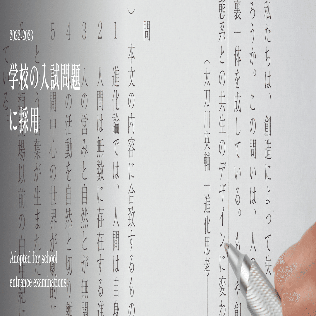 『進化思考』における記述の一部が、同志社大学の国語の入試問題の題材になるなど、いくつかの学校の試験の題材として採用されました。