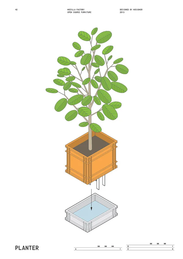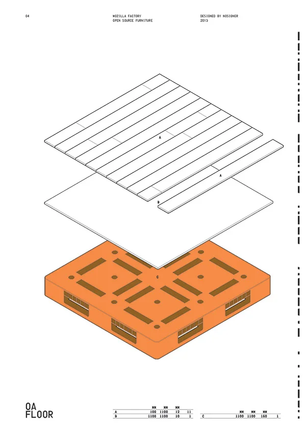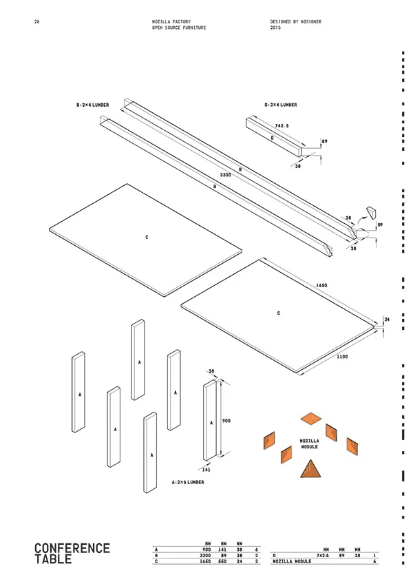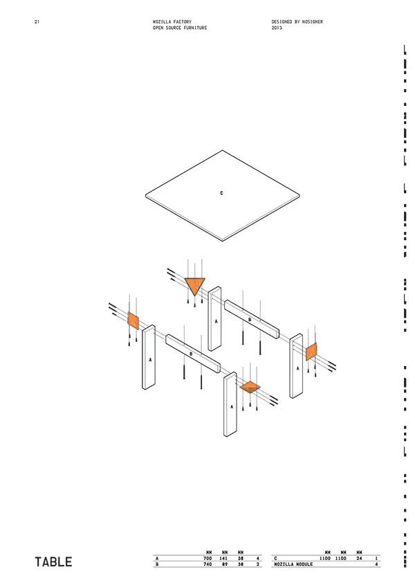 Open Source Furnitureの制作手順をわかりやすく図解した説明書。