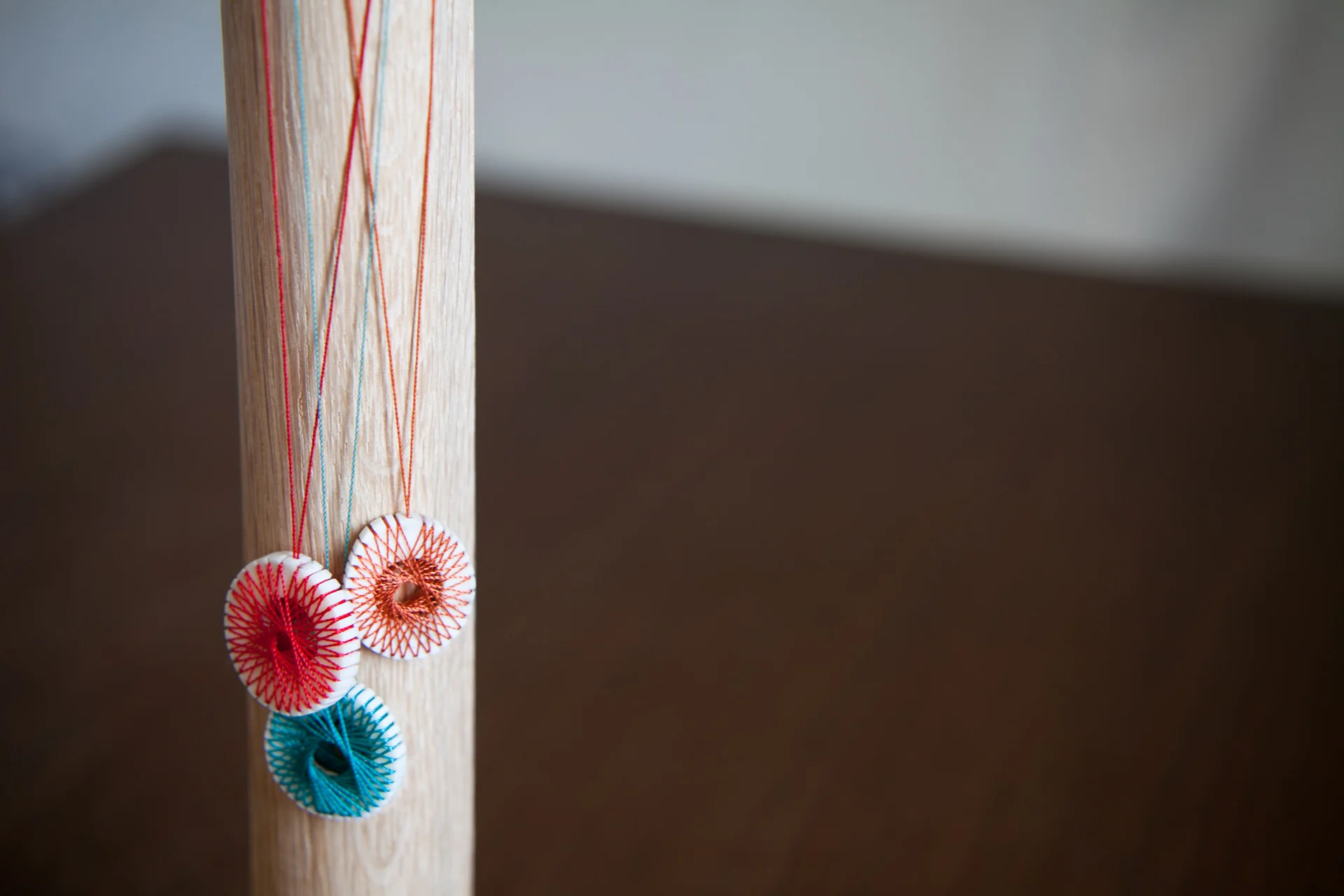 DEERHORN DREAM CATCHER は、牡鹿半島ならではの素材である鹿角と、漁網の補修糸でつくられたアクセサリーです。牡鹿半島の対岸の島にある神社では鹿が神獣と扱われ、また、古来より鹿の角は水難・海難のお守りとされてきました。一方、アメリカインディアンの装飾品であるドリームキャッチャーには、悪魔を食べるお守りとしての効能があります。かつて神社の境内だった牧浜集落の集会所で仲間たちとお茶を飲みながら、神獣であり、現在は害獣として処分されている鹿の角を使ったアクセサリーを、究極の水難のお守り、縁結びのお守りとしてつくることで、コミュニティ再興への祈りを形にすることを目指しました。