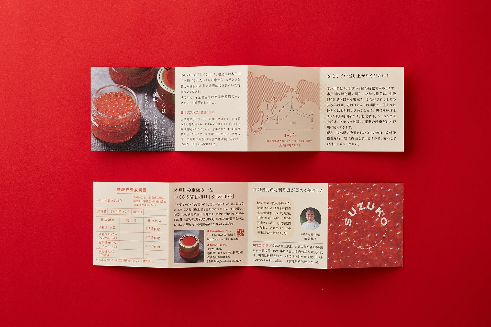 私たちは、いわき市の駅前商店街にある夜明け市場とともに、一流シェフの味付けによる究極の醤油漬けいくら「SUZUKO」を開発しました。木戸川のいくらを最高に美味しく届けたいという思いから、レシピの監修を「京都吉兆」の徳岡邦夫総料理長に依頼。震災前の約20分の1にまで漁獲が落ち込んだ希少ないくらを独自の選定基準で厳選し、特別な味付けを施すことで究極の一品に仕上げました。同時に、木戸川漁港の職員がその調理を再現できるようにすることで、漁業組合が自立的かつ持続的に事業を展開できる仕組みづくりにも取り組みました。