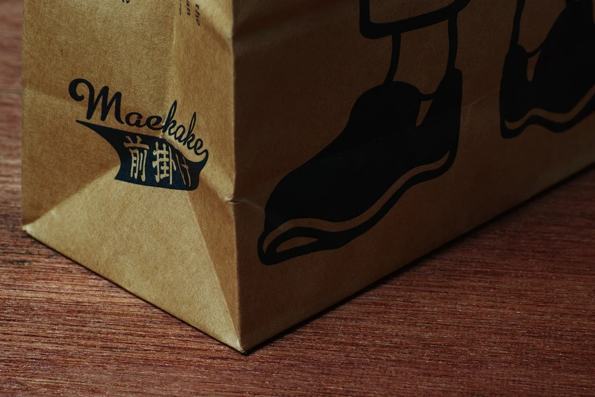 我们与最后一家"一号前挂"制造工厂的工匠们一起为围裙品牌"ANYTHING"设计了包装。到目前为止,围裙都是用塑料薄膜包装,类似于T恤的常见销售方式。然而,在折叠状态下,整体图案不可见,也感受不到"一号前挂"独特的质感,很难识别出它是围裙。由于空间有限,很难将它们陈列在店铺墙上,因此我们致力于通过设计创新围裙的销售方式。我们在米袋上印刷,绘制了腿部插图,配合与内部产品相同图案的围裙缩小版。通过在店内将这些产品组合陈列,可以轻松传达品牌的多样化产品线,同时展示穿着效果。此外,背面的小孔可以让用户看到正面的质感,这增强了购买体验的价值,而可持续设计通过去除包装中的塑料减少了对环境的影响。