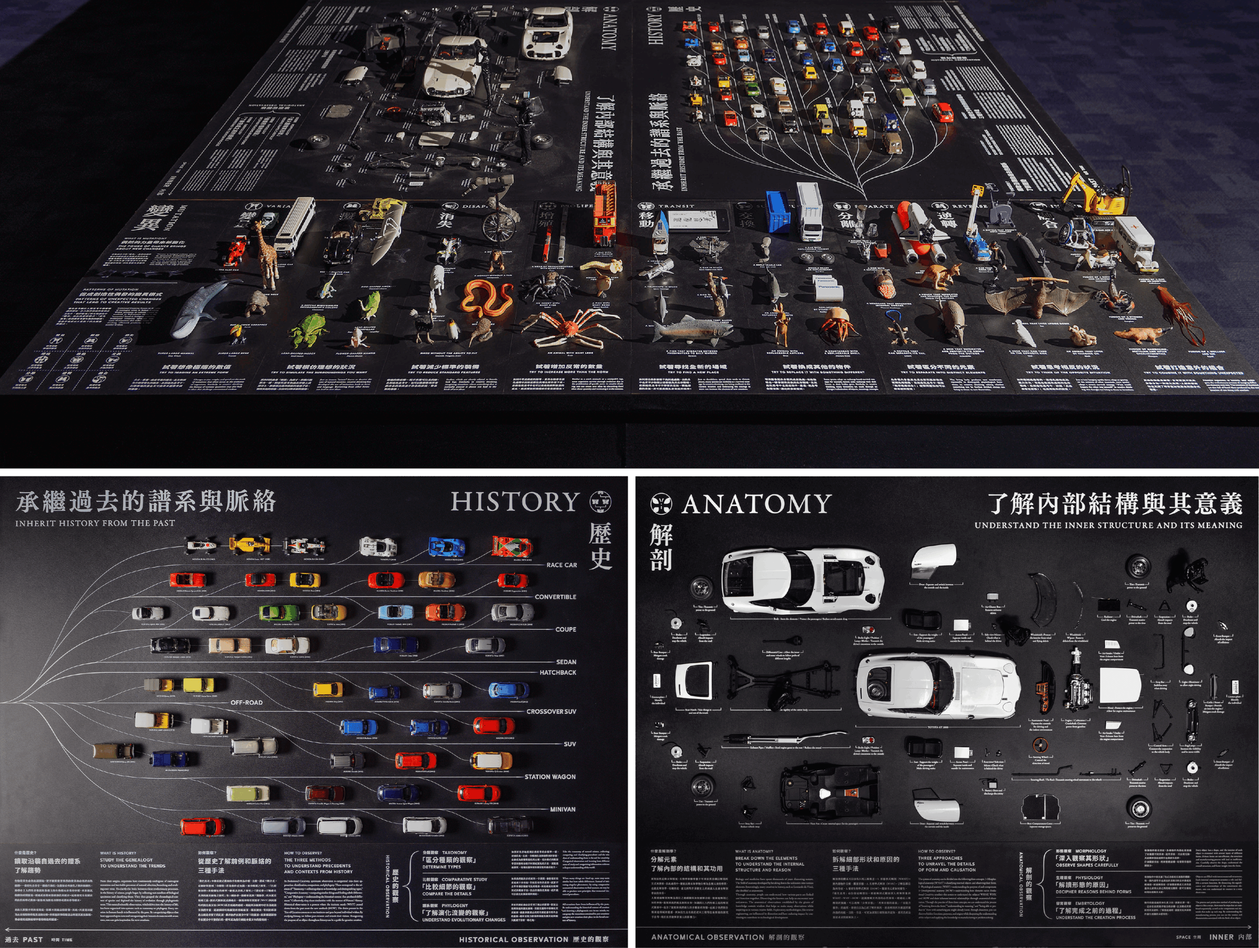乍一看,自然科学可能与设计世界相距甚远,但它们蕴含着各种智慧,能够开启创意和设计的本质。在编纂《进化创意》过程中探索自然科学世界时,太刀川开始收集记录过去几百年来自然科学家工作的珍稀原版书和影印本。进化创意图书馆通过其藏书的一部分,让人们得以一窥我们伟大前辈的智慧。