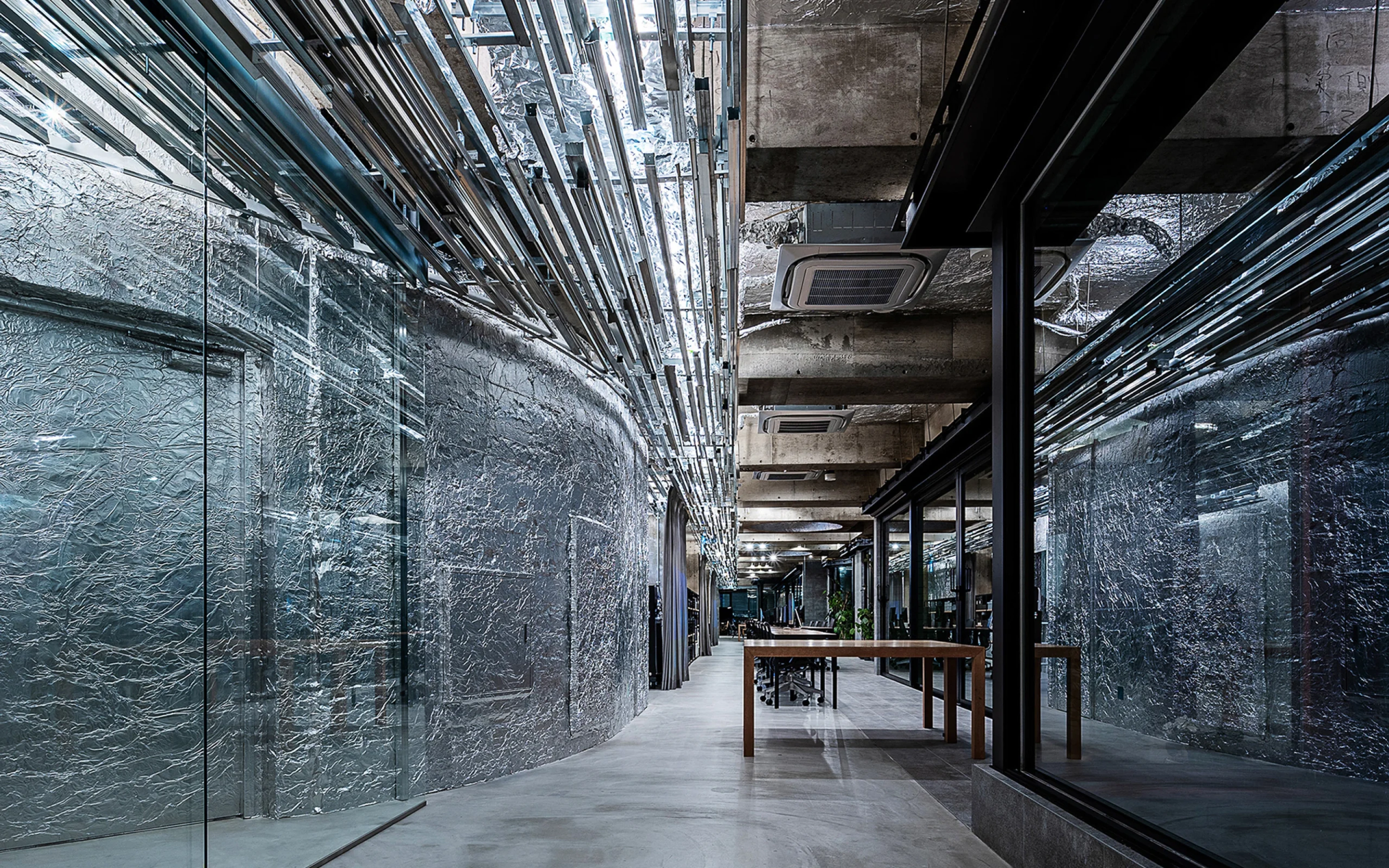 通过充分利用轻钢龙骨等建筑废料,以及使用回收的工业铝箔和通过烧制废料混合物制成的SOLIDO瓷砖,我们最终成功建立了一个罕见的办公空间,其室内设计使用的建筑材料大部分来自废料。