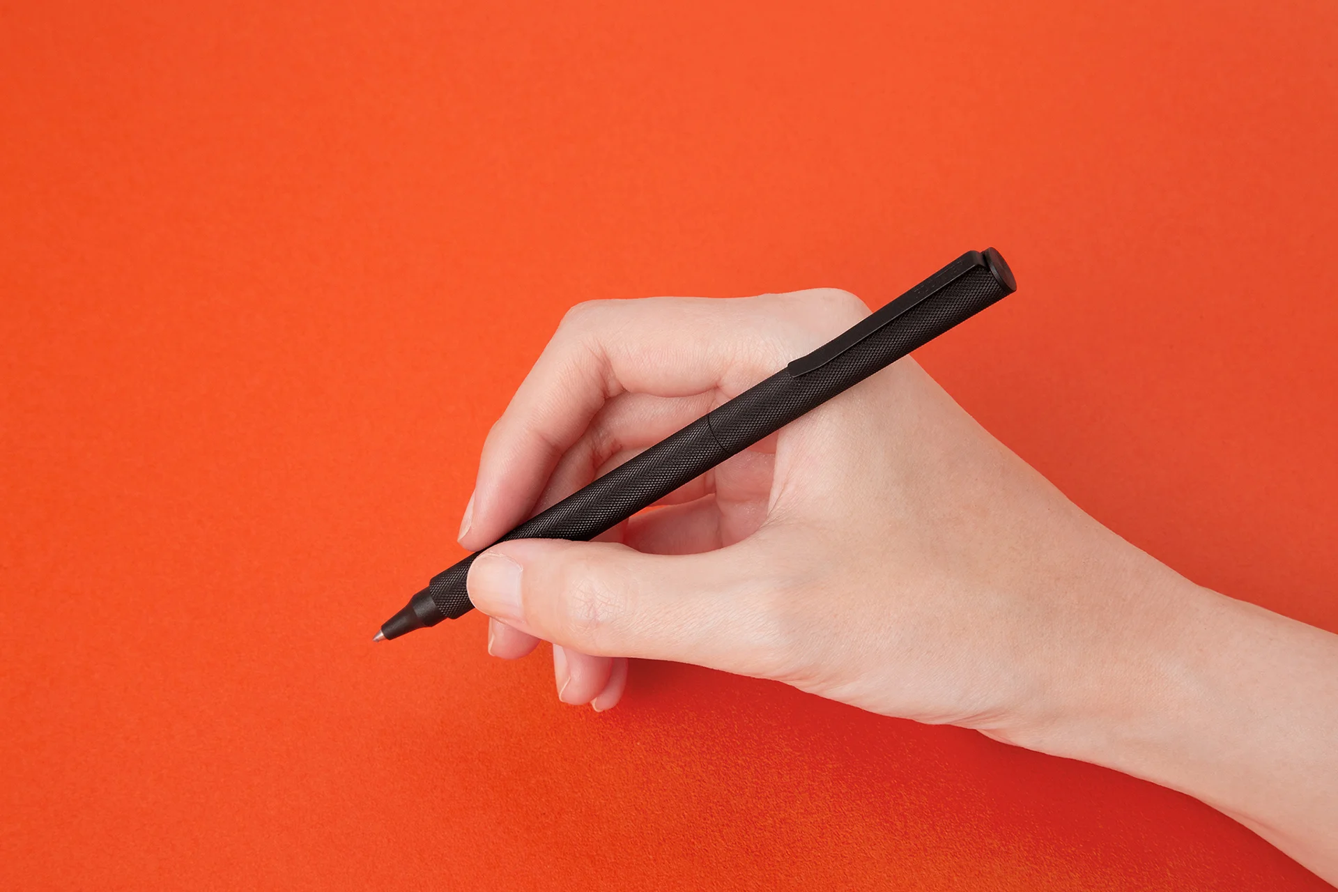 通常只是部分应用于笔身的滚花工艺,被设计为整支笔的一部分。同时,笔的重心被放置在笔尖附近,无论以何种方式握持都能产生最佳的握感。实现了最轻松的书写体验。此外,细长的笔夹不仅设计得能够轻松插入皮质笔套,还能将厚文件装订在一起,放在西装胸袋中时设计得如配饰般合适。