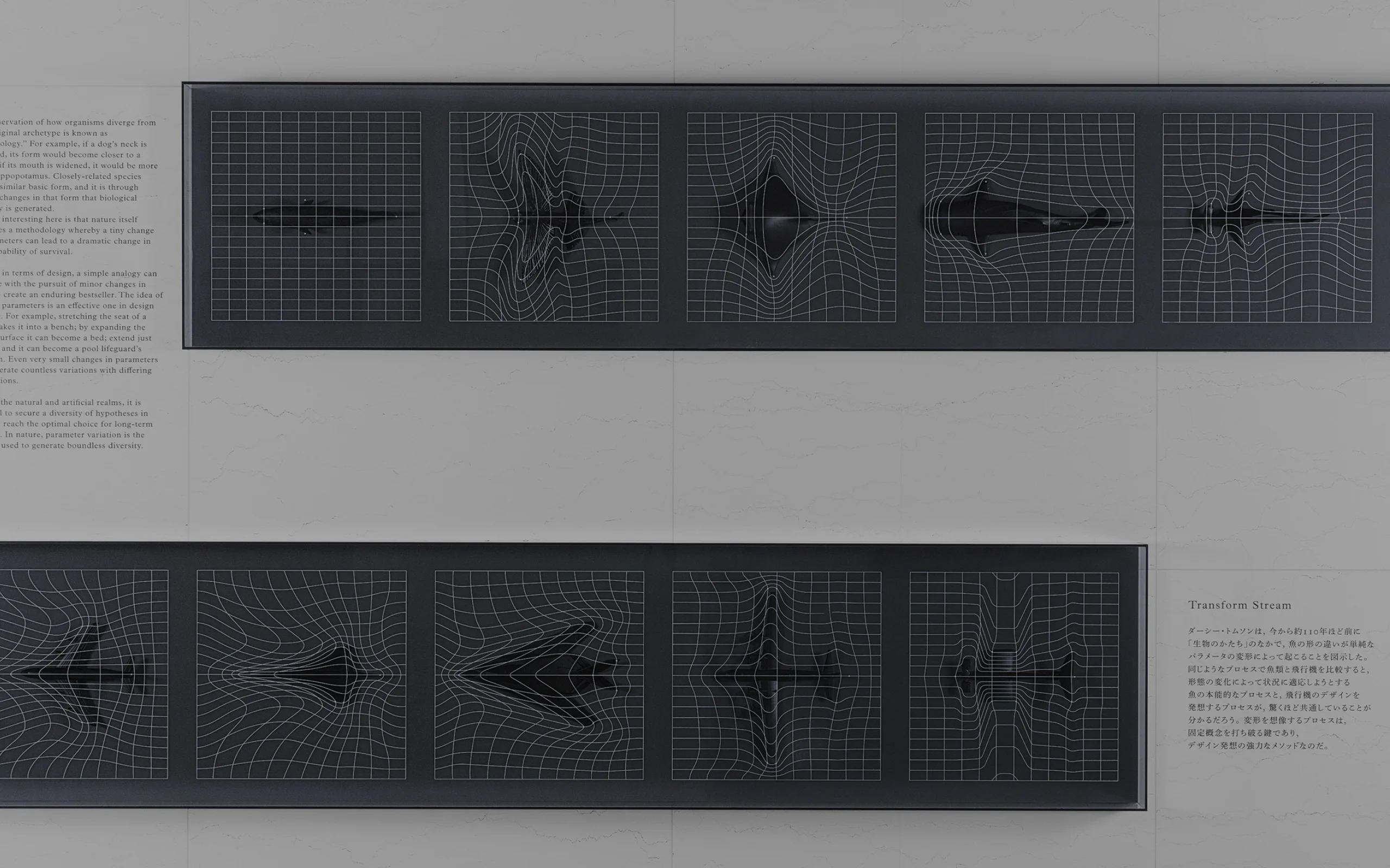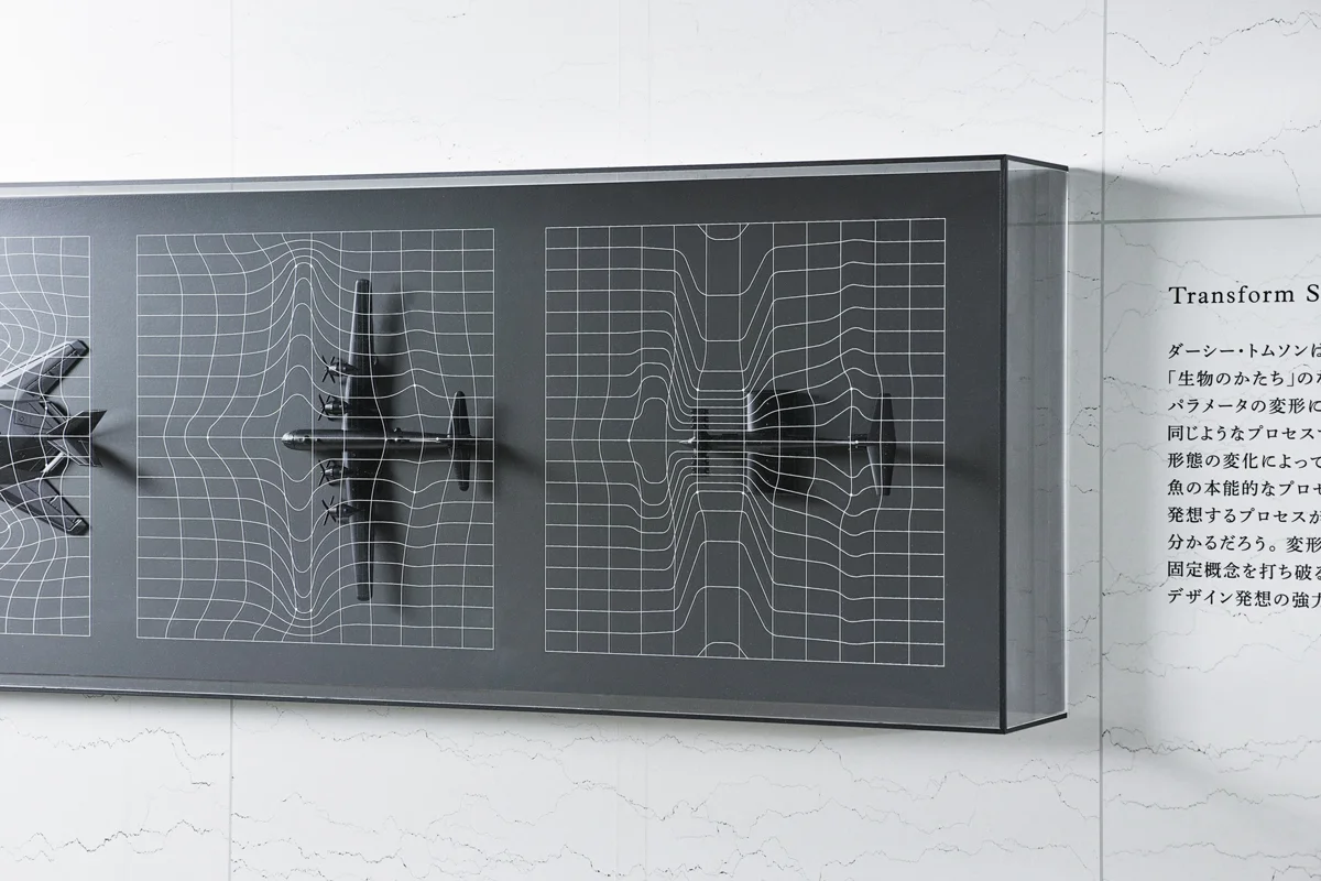 在大約110年前出版的《論生長與形態》一書中,達西·溫特沃思·湯普森證明了魚類形態的差異是由參數的簡單變化所造成的。將魚類的這一過程與飛機中的等效過程進行比較,揭示了通過改變形態來適應條件的本能過程與飛機設計制定過程之間驚人的共同性。設想轉換的極端狀態是突破刻板印象的關鍵,這是產生設計理念的強大方法。
