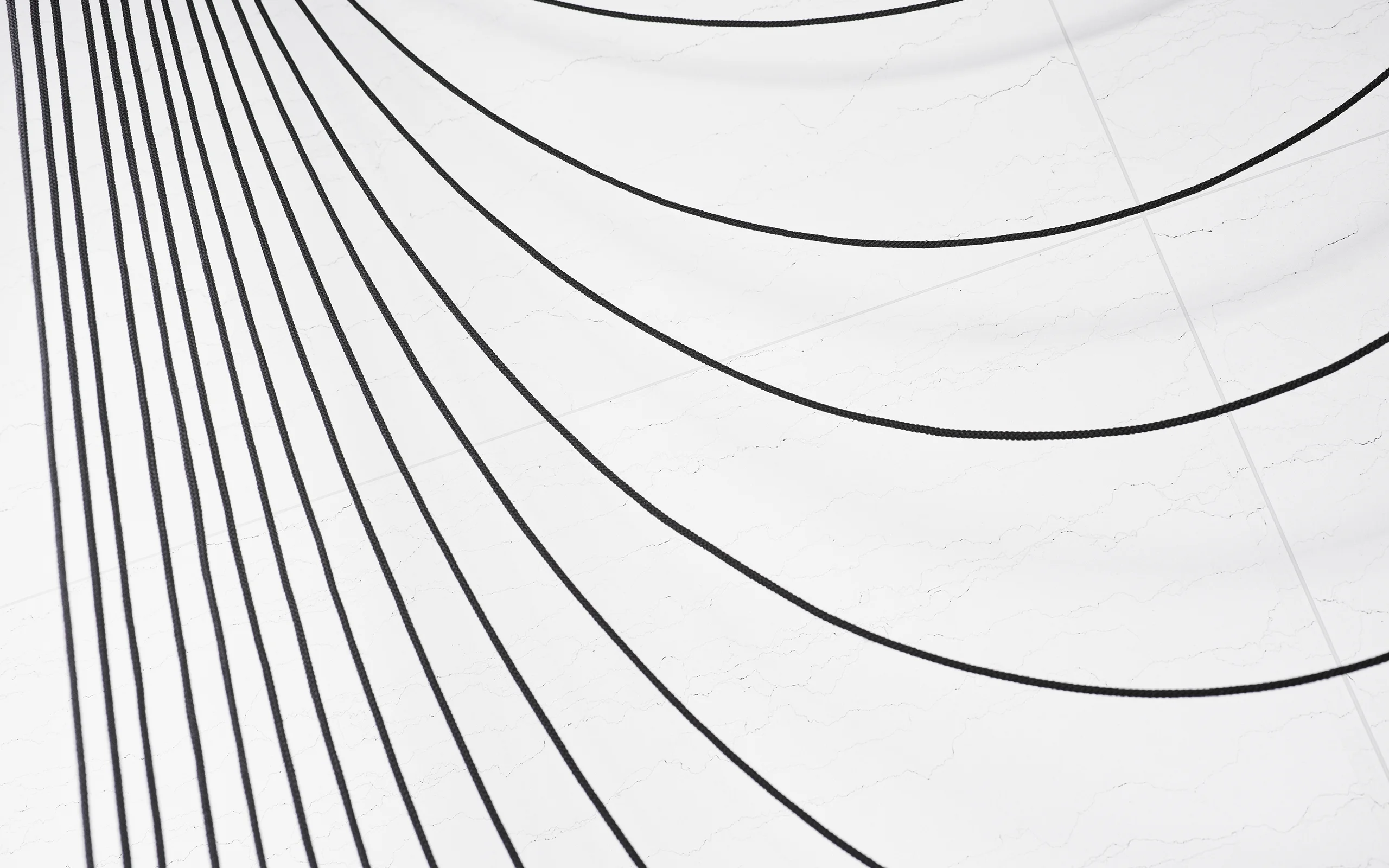 等倍の長さに切ったロープを、ただ吊るしたもの。それを美しいと思うのはなぜだろう。人が最も美しいと感じる線の一つに、カテナリー曲線がある。これは、両端を持った紐を垂らした時に自然にできるカーブのことだ。重力への抵抗から自然に描かれたその線は、構造的に理想的なアーチ形状でもある。アントニオ・ガウディが「サグラダ・ファミリア」を設計する時、紐に重りをぶら下げて作ったカテナリー曲線を上下反転して全体の構造を設計したことはよく知られている。人がこの線に美しさを感じるのは、内部に流れる応力を読み取る、力学への本能が働いているからだろう。